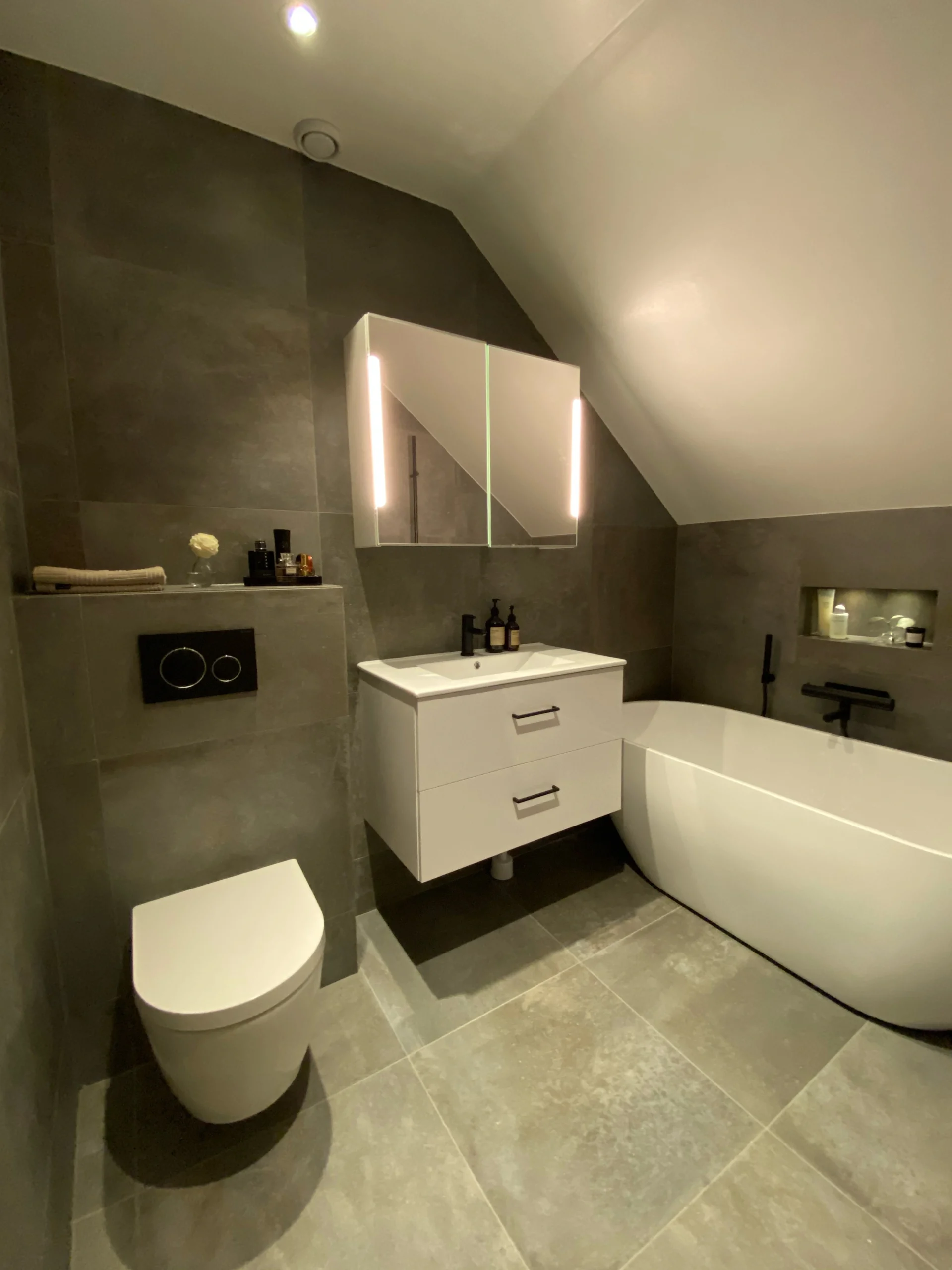 Vi bygger moderna och funktionella badrum enligt branschens alla regler.